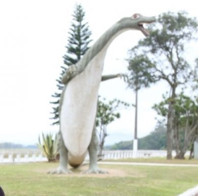 "O dinossauro foi uma ideia minha com o falecido Luiz Carlos Vailati, tio do Robertinho Vailatti. Fomos numa reunião de prefeitos em 1986, em Santo Amaro da Imperatriz. Entrando na cidade, vimos no meio do mato um dinossauro, menor do que esse. Eu disse "quem sabe fazemos um em Tijucas na Beira Rio?