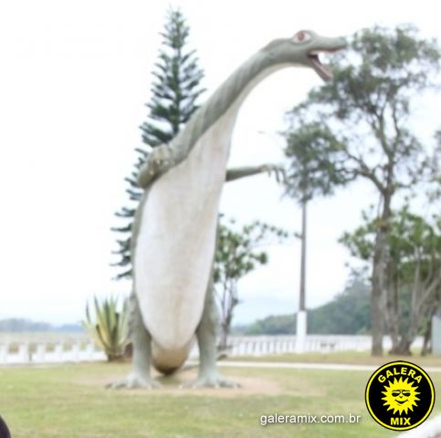 O problema é que na época os professores do Crus e Souza colocaram na cabeça dos estudantes que o Dinossauro era uma loucura, mas hoje em dia todo mundo para em Tijucas para bater uma foto no Dino. Já tentaram até quebrar o Dino, mas até hoje nada! Foi muito bem feito e está ai desde 1986. Até a enchente que passou pela metade da barriga do Dino não foi suficiente para derrubar. Com certeza o Dino é um patrimônio da cidade. Em pé, bonito, forte!"