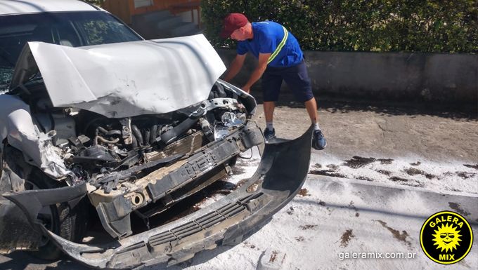 Com a violência do impacto, a frente do veículo ficou completamente destruida. O condutor foi encaminhado consciente ao hospital. A equipe do Corpo de Bombeiros não se feriu.