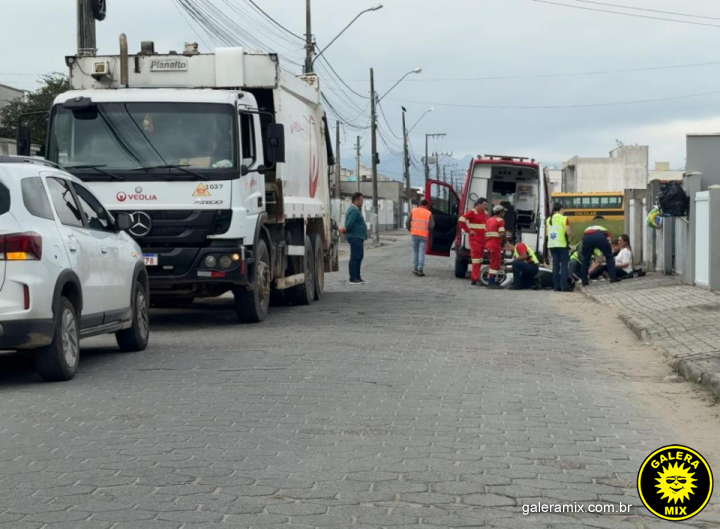 Um acidente envolvendo uma motocicleta Honda Biz e um coletor de lixo mobilizou o Corpo de Bombeiros no bairro Joaia, em Tijucas, na manhã desta quarta-feira, 17 de setembro. Segundo relatos de colegas da empresa de coleta, o trabalhador teria saído repentinamente de trás do caminhão, sendo atingido pela moto que trafegava pela via.