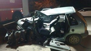 Acidente foi registrado por volta das 22 horas e envolveu um VW/Fox com placas de Blumenau e um Fiat/Uno com placas de São João Batista. Uma das vítimas que ficou presa às ferragens. Ele conduzia o Uno. Outras quatro pessoas ocupavam o Fox.