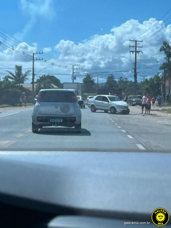 Um acidente ocorreu na manhã desta terça-feira na SC-410, no bairro Nova Descoberta, envolvendo um Siena branco e uma caminhonete Ford Ranger.