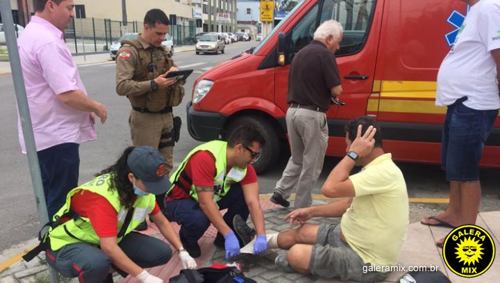 Com o impacto da batida, o motociclista foi arremessado ao chão e teve um ferimento em um dos pés. Uma equipe do Corpo de Bombeiros foi acionada e após realizar os primeiros atendimentos a vítima foi conduzida para o hospital São José.