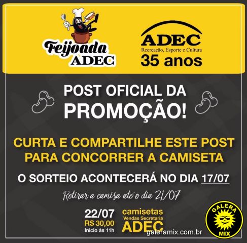 ADEC comemora 35 anos com uma grande feijoada, participe!