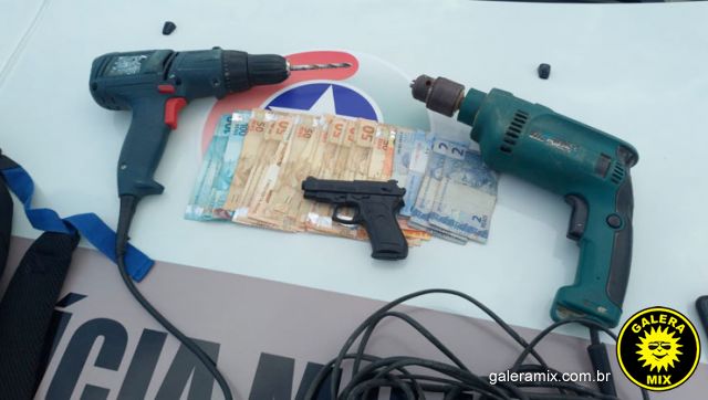 O adolescente carregava uma mochila com os produtos roubados, entre eles, uma furadeira, uma parafusadeira, a quantia de R$ 1,6 mil em dinheiro, aparelhos celulares e a chave de um veículo. Os policiais constataram que a arma utilizada no crime, era um simulacro de arma de fogo, encontrado com o acusado no momento da abordagem.