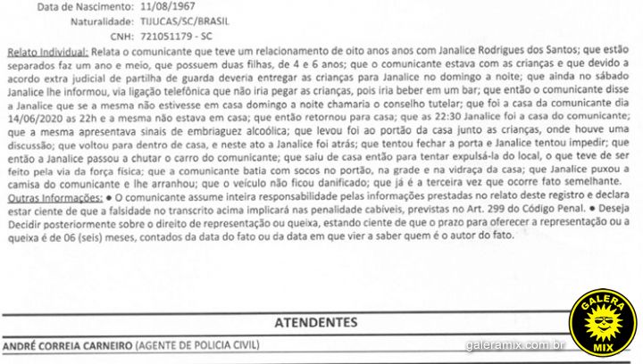 Um Boletim de Ocorrência (BO) foi registrado pela vítima na polícia nesta segunda-feira (14), relatando que as agressões ocorreram em frente as filhas do ex-casal, após uma discussão na casa do advogado.