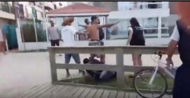 Após ter as mercadorias apreendidas, um grupo de 20 vendedores ambulantes ilegais se reuniu para agredir fiscais da prefeitura. A confusão aconteceu no Calçadão da orla da Meia Praia durante o fim da tarde desta terça-feira (15), e se transformou em uma briga generalizada.