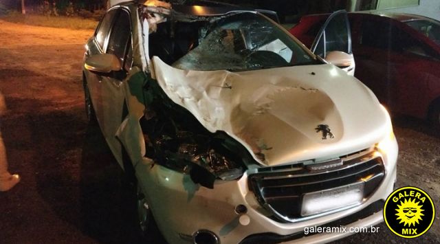 Com o impacto da colisão, o veículo Peugeot ficou destruído e o animal acabou morrendo na via.