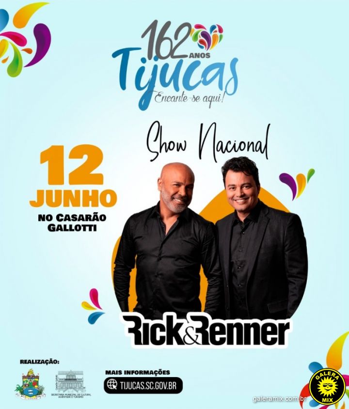 Aniversário de 162 anos de Tijucas terá show nacional da dupla Rick e Renner,