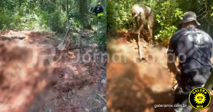 As buscas se concentraram na parte mais alta do morro. Em um ponto de mata fechada, os policiais localizaram indícios claros de ocultação de cadáveres. Escavações revelaram ao menos três corpos enterrados a uma profundidade estimada entre um metro e um metro e meio.