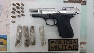 As Guarnições se deslocaram até o endereço repassado, onde fizeram contato com um menor de idade se dizendo ser os responsável pela promoção da festa, o adolescente assumiu também que estava ocorrendo ingestão de bebida na festa. Sendo assim, seus pais foram chamados até o local. Um amigo do jovem que aguardava sua liberação apresentava forte odor de maconha e foi revistado pelos PMs, com ele os militares localizaram 4 torrões de maconha, uma pistola calibre 380 com 13 munições no carregador. Como o jovem não detinha o porte da arma foi encaminhado até a Delegacia de Brusque para que fosse lavrado o flagrante do crime.
