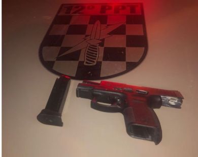 Após a suspeita os PMs determinaram que o veículo parasse, porém o condutor tentou se evadir, utilizando-se de sinais luminosos e uma sirene. No entanto, logo foi abordado pelo Grupo Tático da PM. Após revistas no veículo, os agentes localizaram uma pistola calibre 380 carregada e mais munições sobressalentes.