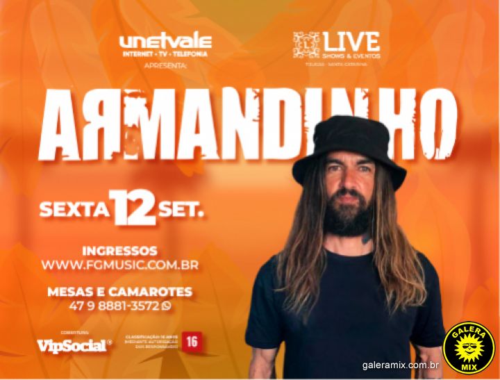 A LIVE Shows e Eventos em Tijucas, apresenta no dia 12 de setembro, show nacional com o cantor Armandinho.