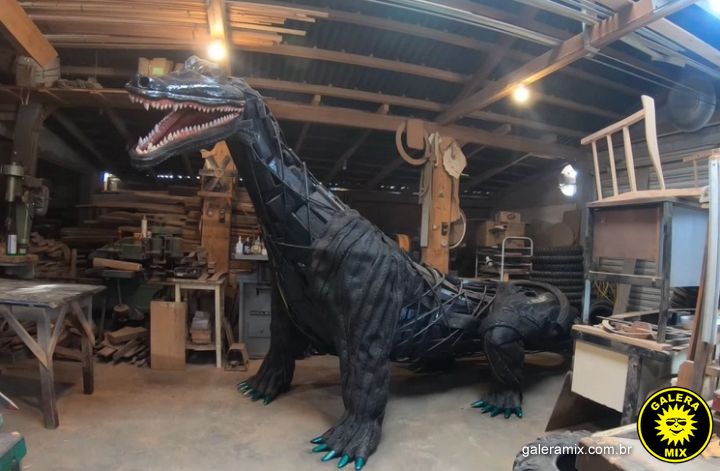 Desta vez, a nova obra de Zaca, um dinossauro inteiro construído com pneus, madeira e ferro ficará disponível para visitação nas proximidades de onde se encontra atualmente o Dino. Ou seja: O Dino vai ganhar uma companheira.