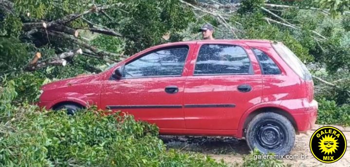Uma árvore de grande porte caiu sobre um carro e parte de uma casa no Bairro Carmelo, em São João Batista, na tarde desta quarta-feira, 22 de novembro. Ninguém ficou ferido. O incidente ocorreu após fortes rajadas de vento seguidas de chuvas intensas, registrando a ocorrência na Rua Antônio Luiz Tamanini.