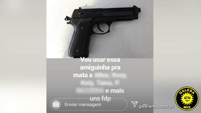 Uma pessoa tem usado um perfil fake no Instagram para espalhar terror a alunos de um centro de educação integral, em Bombinhas. Nesta terça-feira (11), o autor publicou no ícone stories, da rede social, a imagem de uma arma de fogo, e ameaçou matar alunos da escola. Na postagem, ele cita o nome de cinco garotas e deixa claro que outras pessoas também podem se tornar alvo.