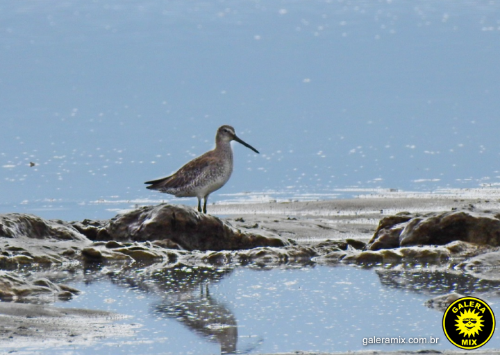 O segundo registro inédito em terras catarinenses foi do maçarico-de-costas-brancas (Limnodromus griséus), fotografado na praia no último dia 06 (domingo). Esta é uma ave que migra da América do Norte e raramente é avistada.