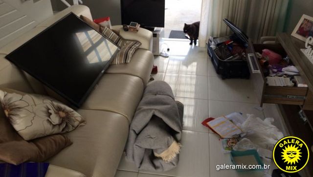 Como perceberam os vizinhos os criminosos deixaram o local as pressas e deixaram para trás uma televisão e outros utensílios que estavam separados para o furto.