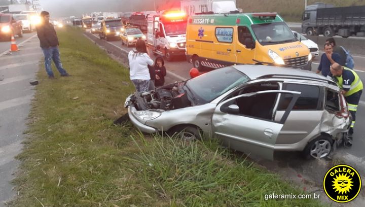 Segundo a Polícia Rodoviária Federal, o motorista do VW/Santana, com placas de São José, seguia pela BR-101 na faixa da esquerda e repentinamente, ao tentar acessar a marginal, no lado direito, colidiu em um Peugeot que capotou.