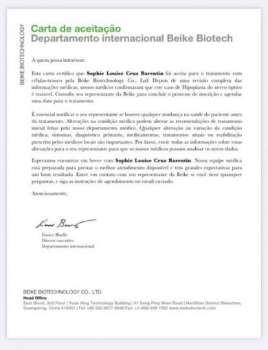 A luta é grande, mas surgiu uma luz no fim do túnel. Isso porque nesta segunda-feira, 30 de agosto, Sophie foi aprovada pela Beike Biotecnologia para ser submetida ao mesmo tratamento com células tronco aplicado no pequeno Lucas, também de Tijucas.