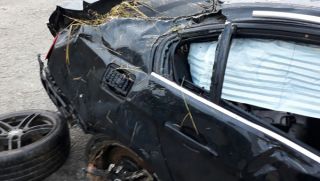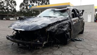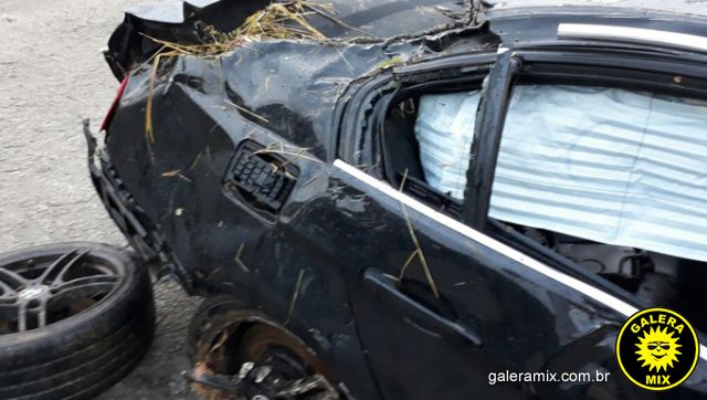 Na madrugada deste domingo (19), uma BMW de cor de preta com placas de São João Batista ficou completamente destruída depois de capotar na BR-101.