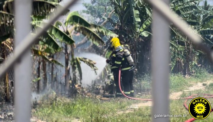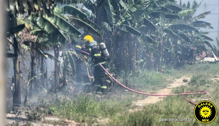 Dois caminhões de combate ao incêndio foram até o local e depois de muito trabalho, socorristas conseguiram controlar as chamas, que se espalharam por conta do vento.