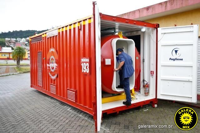 O Corpo de Bombeiros Militar de Santa Catarina (CBMSC) é o primeiro do país a contar com uma câmara hiperbárica móvel. Por estar montado dentro de um contêiner, o equipamento pode ser transportado até o local da ocorrência para prestar socorro a vítimas de incêndios e de acidentes de mergulho. A inovação, fabricada em Sorocaba (SP) e avaliada em R$ 691 mil, foi adquirida com recursos do Pacto por Santa Catarina.