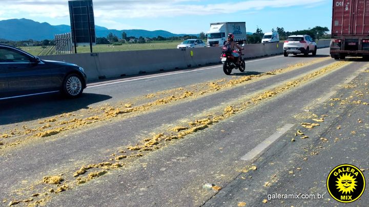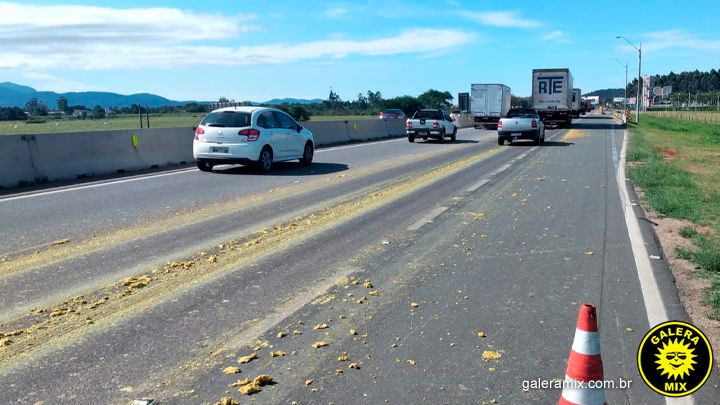 Na tarde desta terça-feira, 08 de março, por volta das 15h um caminhão que transportava uma carga de bagaço de laranja acabou prejudicando os demais motoristas que transitavam pela BR-101, nas proximidades do Outlet Premium em Porto Belo.