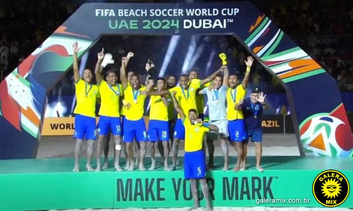 A seleção brasileira de futebol de areia conquistou neste domingo (25) o hexacampeão mundial da modalidade. O título, com uma campanha de 100% de aproveitamento, foi confirmado no início da tarde com a vitória por 6 a 4 sobre a Itália, em Dubai, nos Emirados Árabes.