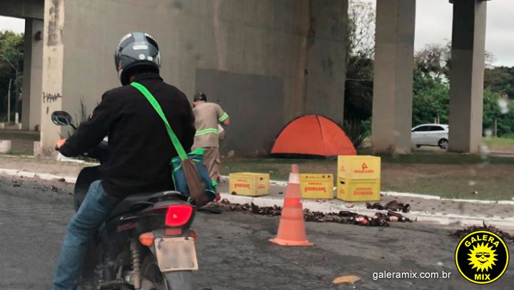 Os próprios trabalhadores fizeram a limpeza no local e utilizaram cones para sinalizar os riscos. Uma baia do caminhão teria aberto no trajeto, provocando a queda. Ninguém ficou ferido.