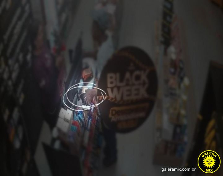 Imagens de uma câmera de monitoramento de uma loja de suplementos registrou o furto de um celular. O caso ocorreu na tarde deste domingo, 24 de novembro.