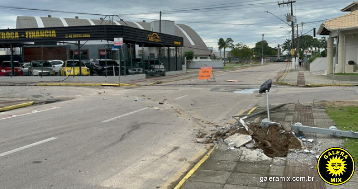 Um caminhão colidiu contra um poste da rede elétrica e arrastou a estrutura por vários quilômetros, deixando um rastro de destruição durante a madrugada desta terça-feira, 13, no Centro de Tijucas.