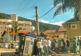 Nna manhã desta segunda-feira, 22 de maio, um caminhão que transportava postes de eletricidade acabou tombando na descida do Morro de Bombas, em Bombinhas. De acordo com informações da Polícia Militar, o veículo pertencente à empresa Mercolux Iluminação capotou depois que o condutor perdeu o controle.