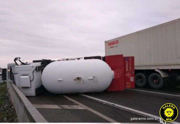 Um caminhão de gás tombou na BR-101 sentido Norte em Porto Belo no começo da tarde desta sexta-feira (20). O acidente fez com que a PRF (Polícia Rodoviária Federal) bloqueasse o trecho Norte da rodovia. O motorista relatou as equipes de resgate que uma das rodas do veículo travou causando o capotamento. como a carga é perigosa e há risco de explosão, a BR deverá ser bçloqueada para a operação de retirada do veículo.