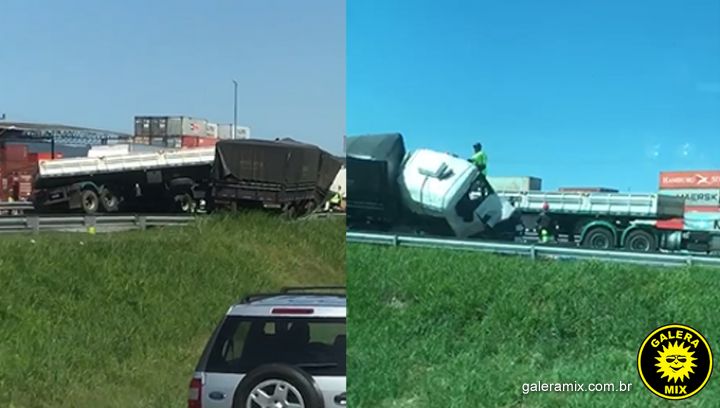 Um caminhão da transportadora Brasil Novo, de Tijucas, se envolveu em um acidente com outro caminhão na BR-101, na tarde deste sábado (22). A colisão aconteceu nas proximidades do Posto Santa Rosa, em Itajaí, no sentidosul, por volta das 15h.