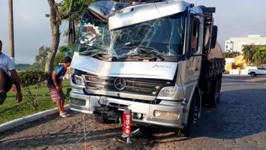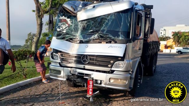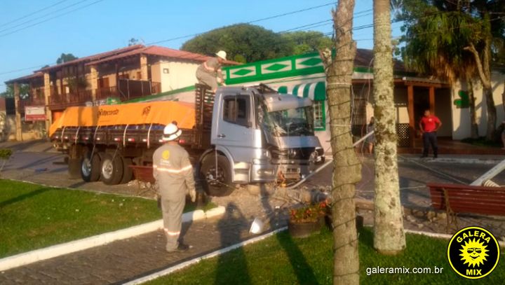 Na manhã desta quinta-feira (09) um caminhão carregado de pisos colidiu e derrubou um poste da rede elétrica no Centro de Tijucas. O motorista e o passageiro foram resgatados pelos bombeiros devido aos riscos de choque elétrico.