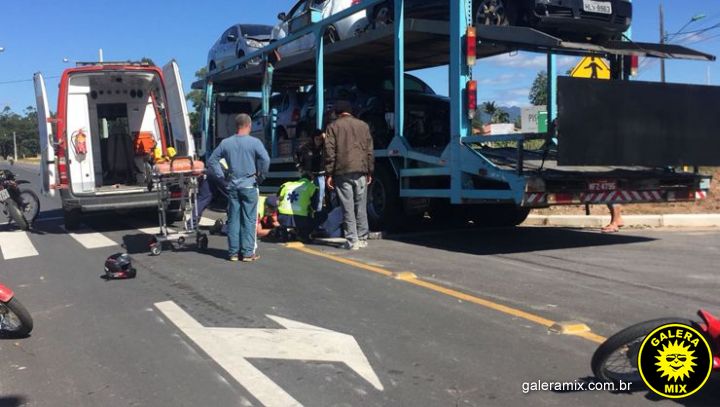 Uma mulher ficou gravemente ferida em um acidente em Tijucas. A colisão envolvendo um caminhão cegonha e uma motocicleta foi registrado na entrada de um loteamento na avenida Carlos Umberto Ternes, a “P2”, no bairro Joaia.