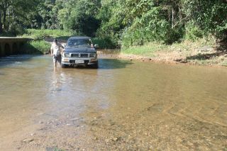 No ponto em que eu menos esperava, ou melhor quando comecei a me preocupar, pois já tínhamos rodado da última parada uns 30 minutos, um rio corta nossa estrada, e do outro lado um restaurante com estrutura certa e necessária inclusive com wifi, para se conetar com a civilização. A partir desse ponto o trajeto é pela zona rural de Tijucas.