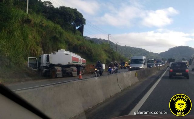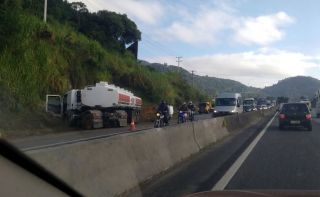 Ao perder o controle do veículo, o caminhão ficou atravessado em “L”, mas por sorte nada pior aconteceu. Uma das pistas precisou ser interditada.