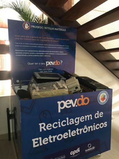 – Materiais Coletados: CPUs e servidor, fontes, memória, processador, HD, drive de CD e DVD, cooler, mouse, teclado, estabilizador, notebooks, celulares, telefones, walkie-talkie, rádio, comunicador, aparelhos de CD/DVD/Blue-Ray, som, cabos e fios em geral.