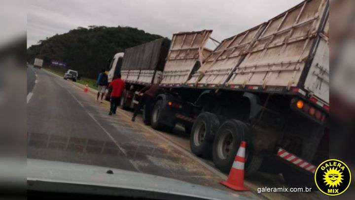Uma carreta carregada de milho tombou na manhã desta segunda-feira (07) na BR-101, em Tijucas. O acidente aconteceu por volta das 10h30min no Km 174 da rodovia.