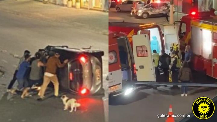 A situação ocorreu por volta das 20h40, segundo relatos preliminares. No carro que capotou, estavam uma mulher, o condutor e uma criança. A condição dos ocupantes do veículo ainda não foi divulgada.