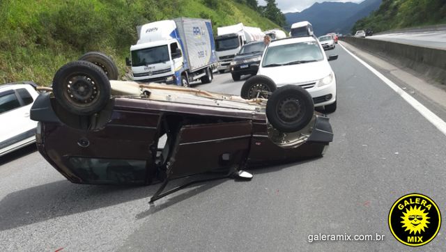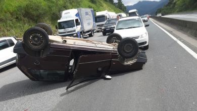 Carro capota na BR-101 após se envolver em acidente com outros dois veículos