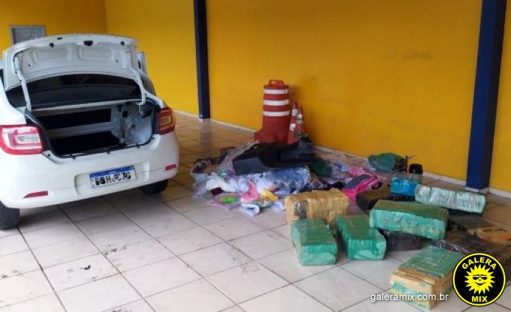 Em fiscalização de rotina, os agentes abordaram um automóvel Renault/Logan com placas de Porto Belo. Ao realizarem a revista, encontraram diversos tabletes de maconha no porta-malas e no interior do veículo.