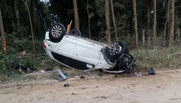 Carro de vereadora de Tijucas, capota durante a madrugada