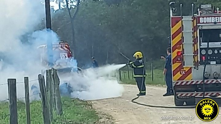Bombeiros foram acionados para tentar controlar o fogo, mas o carro, um Ford/Fiesta, ficou completamente destruído. Ele era a gás, o que pode ter contribuído para que o fogo tivesse início.