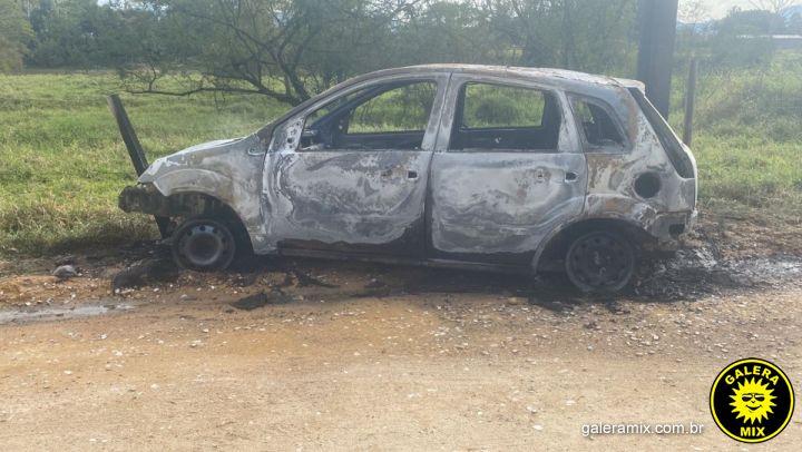 Carro furtado pega fogo após colisão em Tijucas