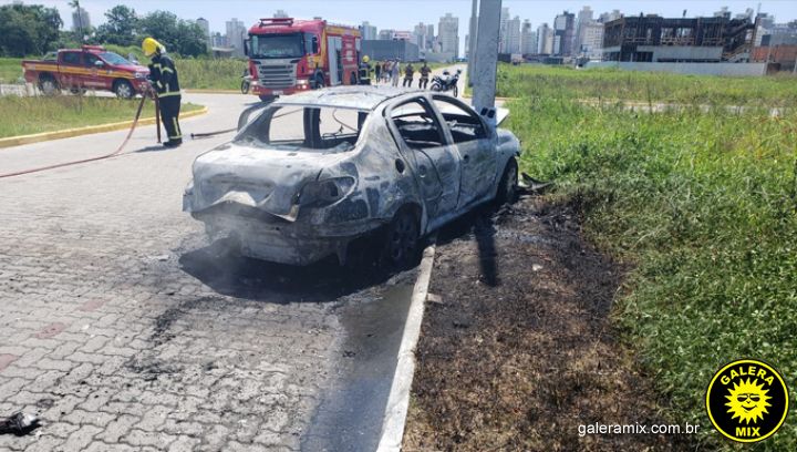 Bombeiros foram acionados por volta das 11h, para atender a ocorrência na rua 450, no Bairro Morretes. O motorista, 38 anos, conseguiu sair do automóvel antes que as chamas se alastrassem.