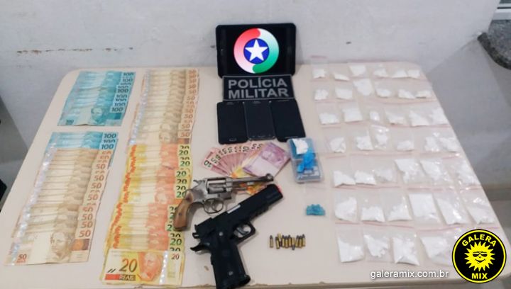 Com ele foram encontrados 13 comprimidos de ecstasy e duas porções de cocaína. Na residência, a polícia flagrou a mulher pesando e embalando cocaína. Além de diversas porções da droga, foram encontrados na casa um revólver calibre .22 e pouco mais de R$3 mil em dinheiro.