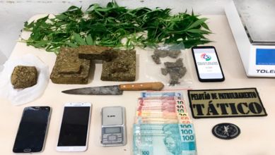 Diante dos fatos, buscas foram realizadas na casa do rapaz, de 24 anos. Segundo relatório policial, material para embalar a droga, dinheiro, porções de maconha e dois pés do entorpecente foi encontrado.